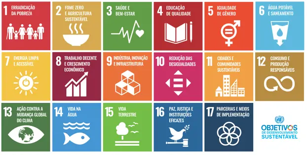 Os Objetivos de Desenvolvimento Sustentável (ODS) foram fixados em 2015 pela Organização das Nações Unidas como um plano de ação para as pessoas, para o planeta e para a prosperidade. Trata-se de uma agenda de ação até 2030, com 17 Objetivos e 169 metas construídas sobre o legado dos Objetivos de Desenvolvimento do Milênio (ODM).