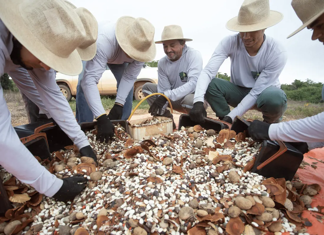 Com o apoio da De Heus, a BJF está fomentando coletivos de sementes locais, que estão recebendo o devido treinamento e suporte da equipe técnica do projeto. Não apenas comunidades locais, como povos indígenas da região de Santana do Araguaia, estão coletando, de forma sustentável, as sementes nativas para cultivo de mudas sadias, trazendo importantes benefícios socioeconômicos e promovendo a geração de renda para as famílias que vivem nas proximidades do Rio Araguaia - sendo que muitas delas também estão engajadas nas etapas de plantio e manutenção.