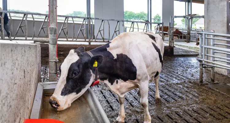 Em relação ao gado leiteiro, o consumo de água depende da produção de leite que, por sua vez, depende da ingestão de água. Prover às suas vacas a quantidade suficiente de bebedouros com água limpa é fundamental. Além disso, notamos que a demanda de água medida em litros aumenta mais do que a produção de leite em litros. Como regra geral, a relação entre a ingestão de água e a produção de leite é de 3,5 para 1, o que significa que são necessários pelo menos 140 litros de água para produzir 40 litros de leite. Durante o estresse térmico a ingestão de água é obviamente maior. Em bovinos de corte, o abastecimento inadequado dos bebedouros reduzirá a ingestão de água e, consequentemente, o consumo de matéria seca e o ganho de peso do rebanho.