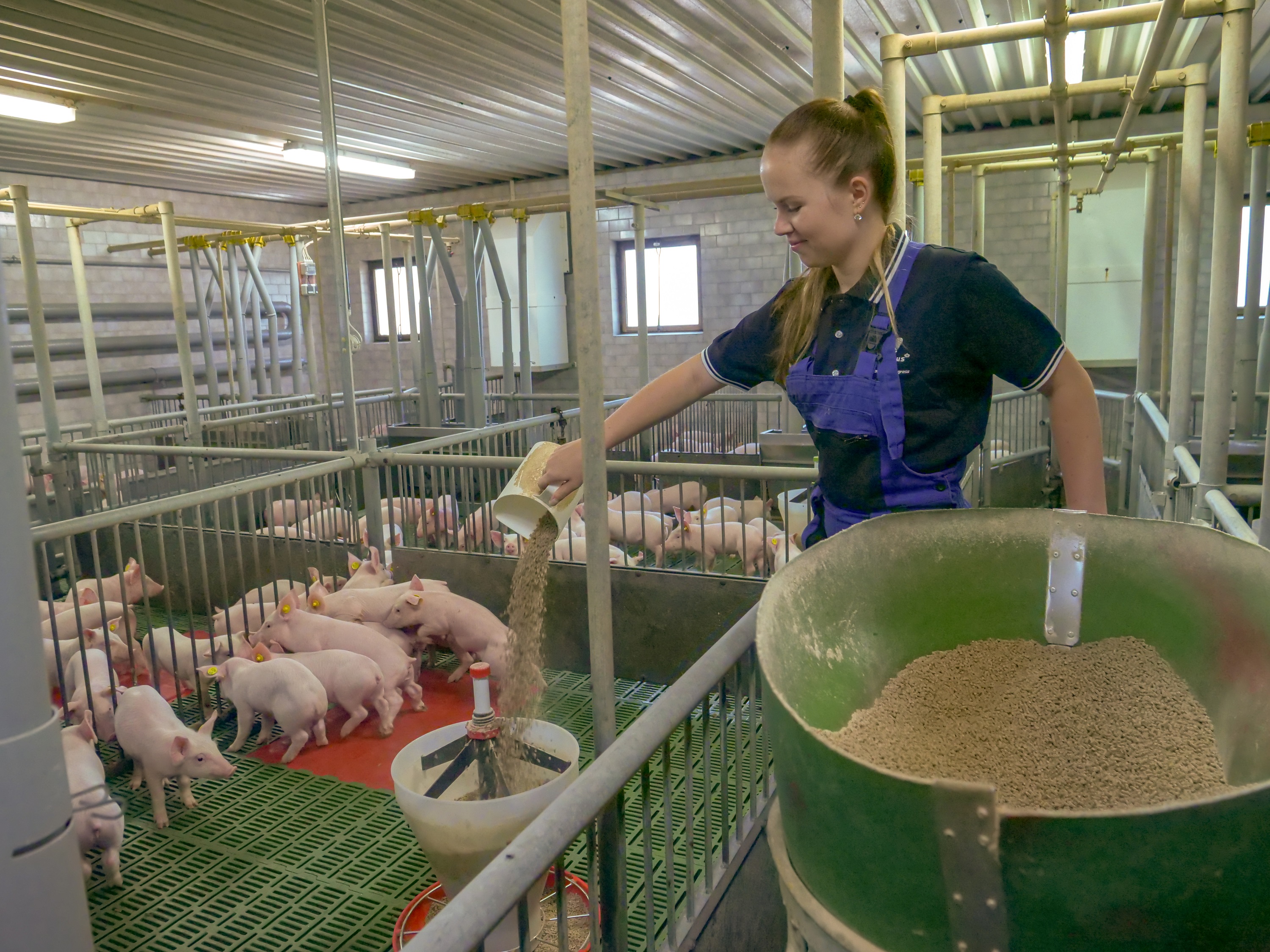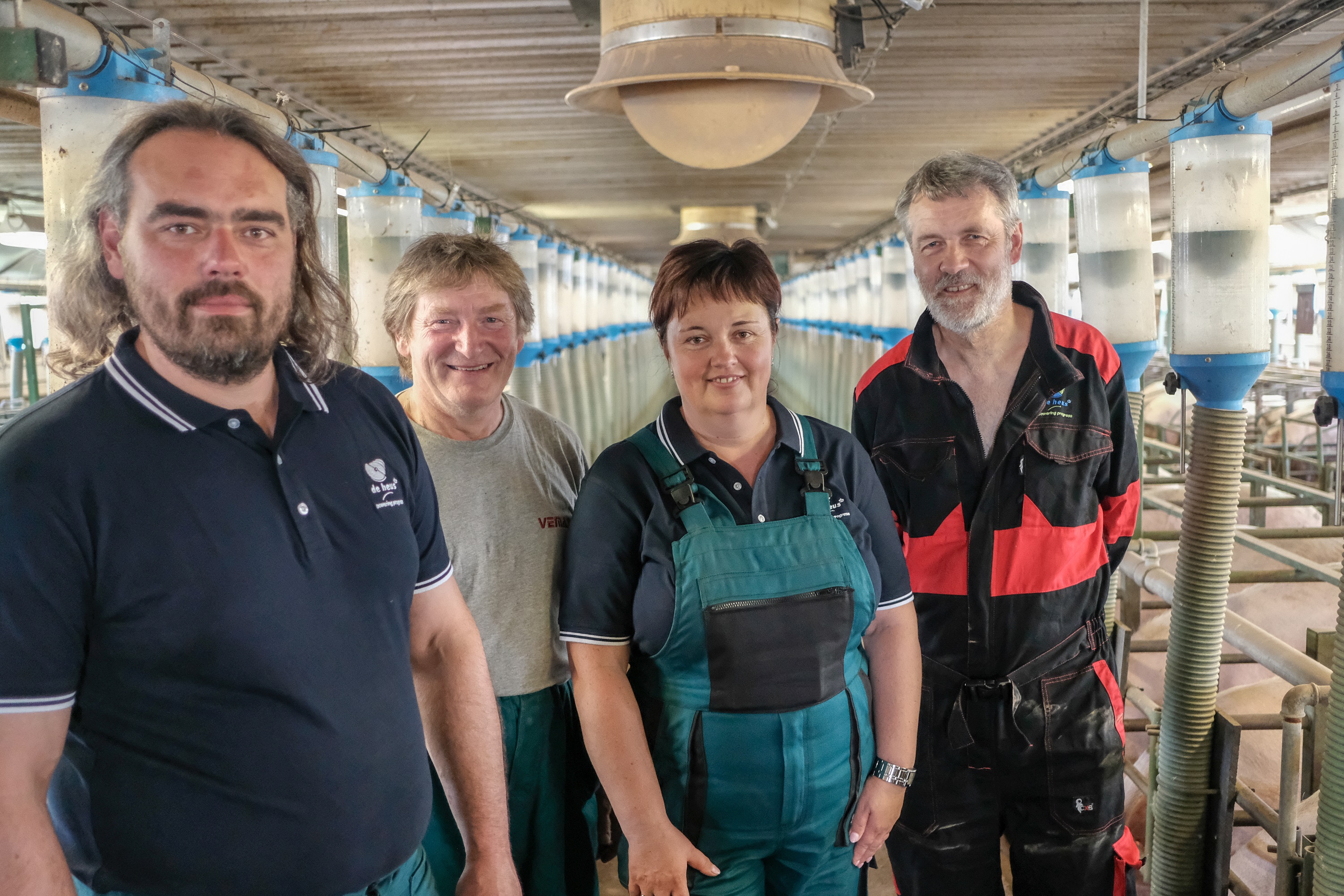 Há alguns anos, a Vemas construiu um novo galpão para porcas prenhes. De Heus os ajudou a escolher um fornecedor de tecnologia para alimentação animal e habitação. “Tínhamos ofertas para várias soluções comumente utilizadas em nosso país. No entanto, De Heus recomendou o Nedap, que é um sistema amplamente utilizado na Holanda. É o alojamento de porcas em um grupo dinâmico, onde todas as porcas estão em diferentes estágios de gestação juntas, em um grande grupo de 300 porcas. A vantagem é que os animais não ficam nervosos, pois com um número tão grande não há hierarquia entre as porcas. Outro fator positivo é que o sistema contém baterias de caixa de alimentação, que, com base no chip do animal, dose a quantidade exata de ração de acordo com a curva de alimentação definida.Claro, essa mudança no alojamento também teve um efeito significativo no aumento do número de leitões criados por porca por ano.