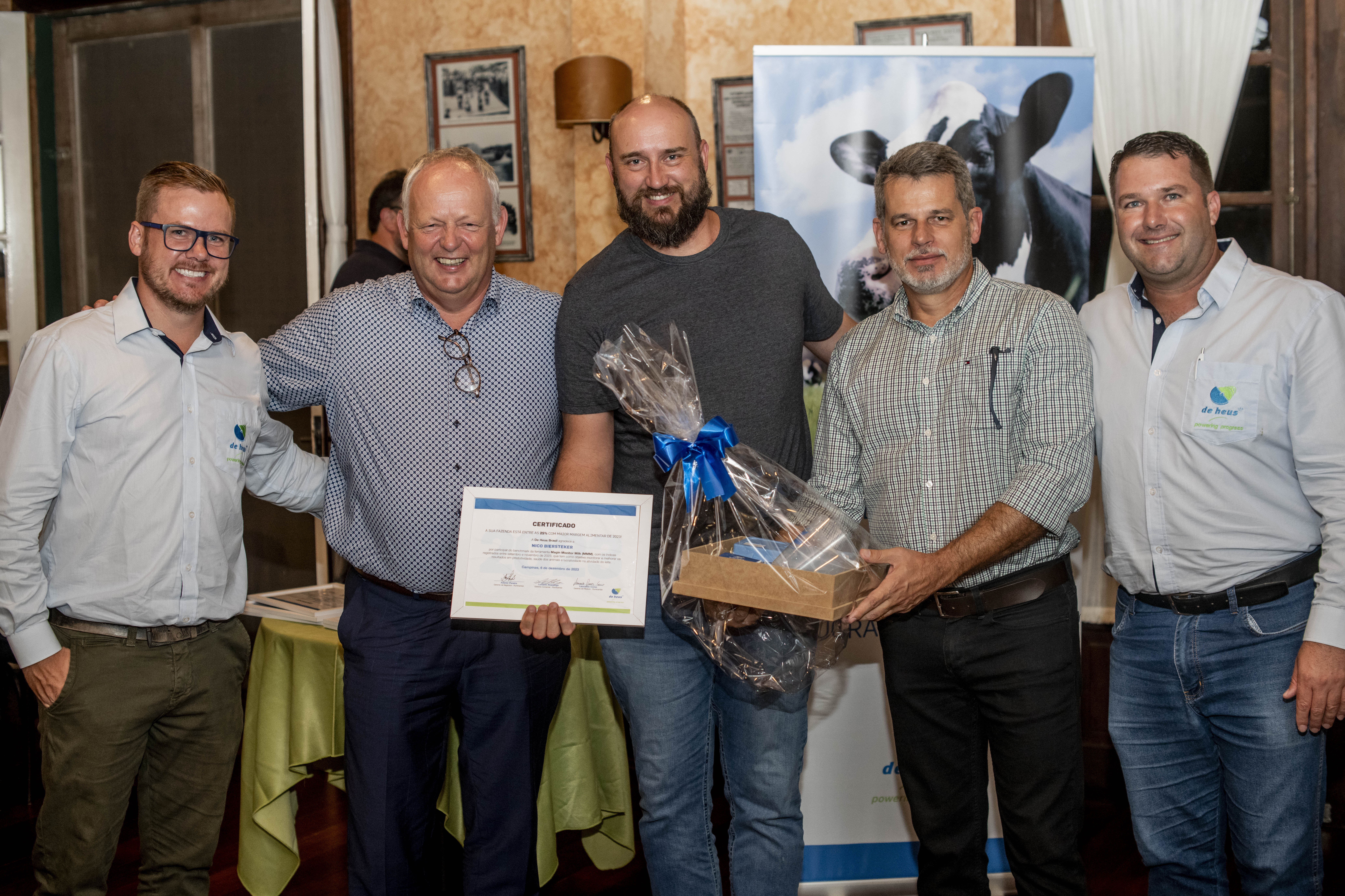 Sedenir Marcon, descente de italianos e pertencente à segunda geração de produtores de gado de leite, participou pela terceira vez da premiação e obteve a 3ª colocação no ranking. Segundo ele, a ferramenta MMM tem contribuído de forma bastante positiva para sua produção de leite desenvolvida no Sítio São Roque, em Boaventura de São Roque (PR). “Estou há mais de 30 anos no setor e há cinco anos conto com o suporte da De Heus e posso afirmar que, com certeza, esta ferramenta tem me ajudado a conhecer muito mais do meu negócio”, declarou. Dimas Isac, médico veterinário e representante da De Heus, que acompanhou a evolução dos índices de produção da fazenda de Sedenir, também confirma e celebra os bons resultados. “Desde o início focamos bastante na produção de volumoso, a fazenda dele é uma das melhores da região, possui bom manejo e animais de muita qualidade. E o Sr. Sedenir ter ficado em terceiro lugar nesta premiação, dentre os melhores do Brasil, reflete este ótimo trabalho realizado em parceria com a empresa”, afirmou Isac.