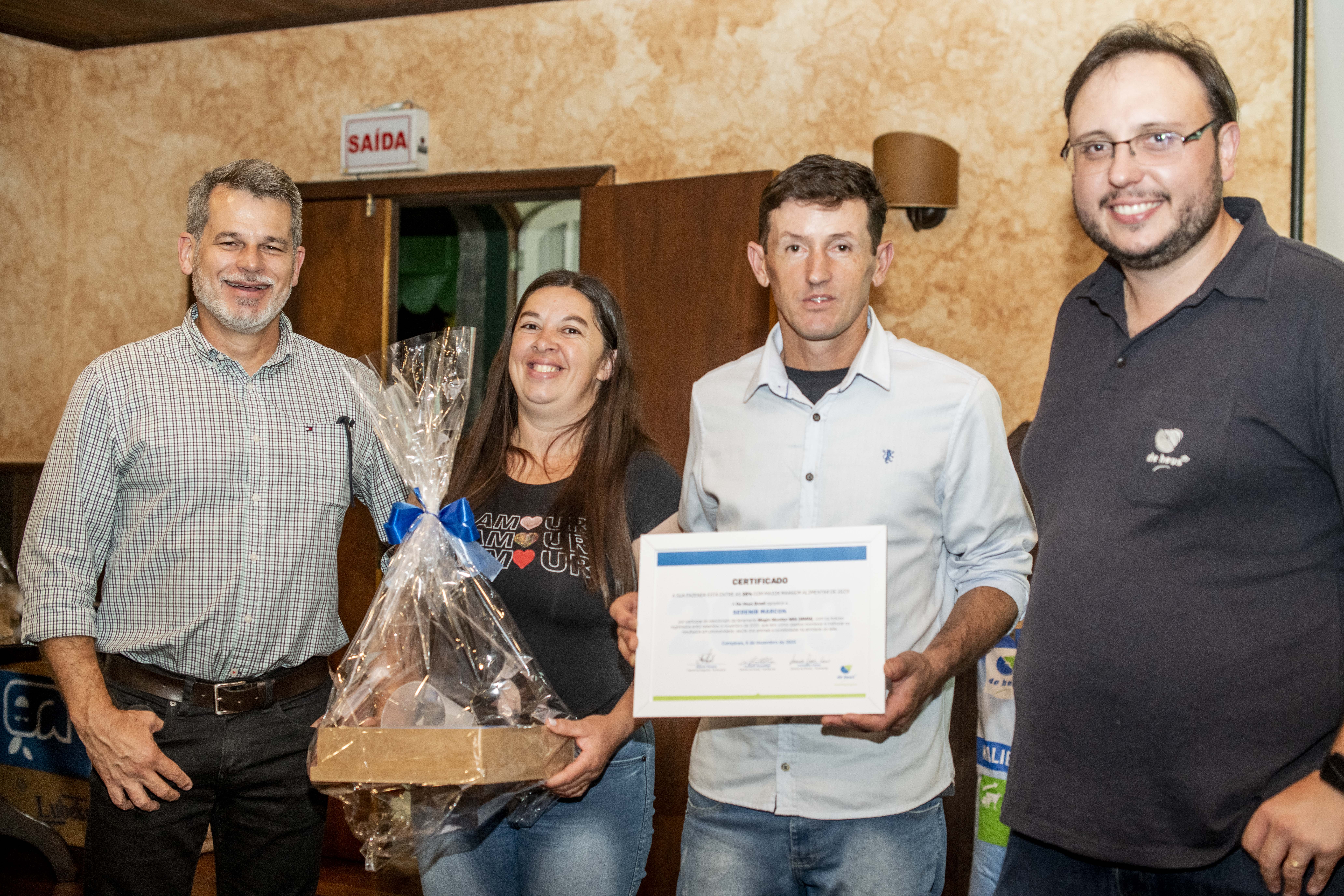 Descendentes de alemães, o casal de produtores de leite de primeira geração, Emerson Luiz Sander e Marlene Heiser Sander, da Fazenda Santo Antônio, de Guarapuava (PR), ficaram muito felizes com a participação na cerimônia e com a 1ª colocação na categoria eficiência alimentar. “Muito bom ter este reconhecimento. Nossa genética de gado é de Castro e estamos evoluindo em conforto animal em nossa fazenda. Neste ano, investimos em aspersão, ventiladores, cama de areia e estamos trabalhando para ter ainda uma ordenhadeira nova, para agilizar a ordenha e possibilitar aos animais mais tempo de descanso. Acho a ferramenta MMM muito importante, pois ela possibilita termos uma margem para gerenciar outros custos e, assim, obtermos mais lucratividade no final”, afirmou Emerson. Já segundo Marlene, a premiação foi muito gratificante e durante o evento ela pôde observar pelas palestras e pelos indicadores de produção nacional de leite, o quanto a fazenda deles está muito bem adequada aos índices ideais de produtividade. “Gostaria de agradecer a minha família, meus filhos Oliver e Allana, o consultor Juliano e dizer que o produto da De Heus realmente dá muito mais retorno, pois aumentou nossa média de produção de leite por dia. É muito importante estar perto de pessoas boas e inteligentes, que possam nos ajudar a obter sucesso no negócio”, declarou Emerson.