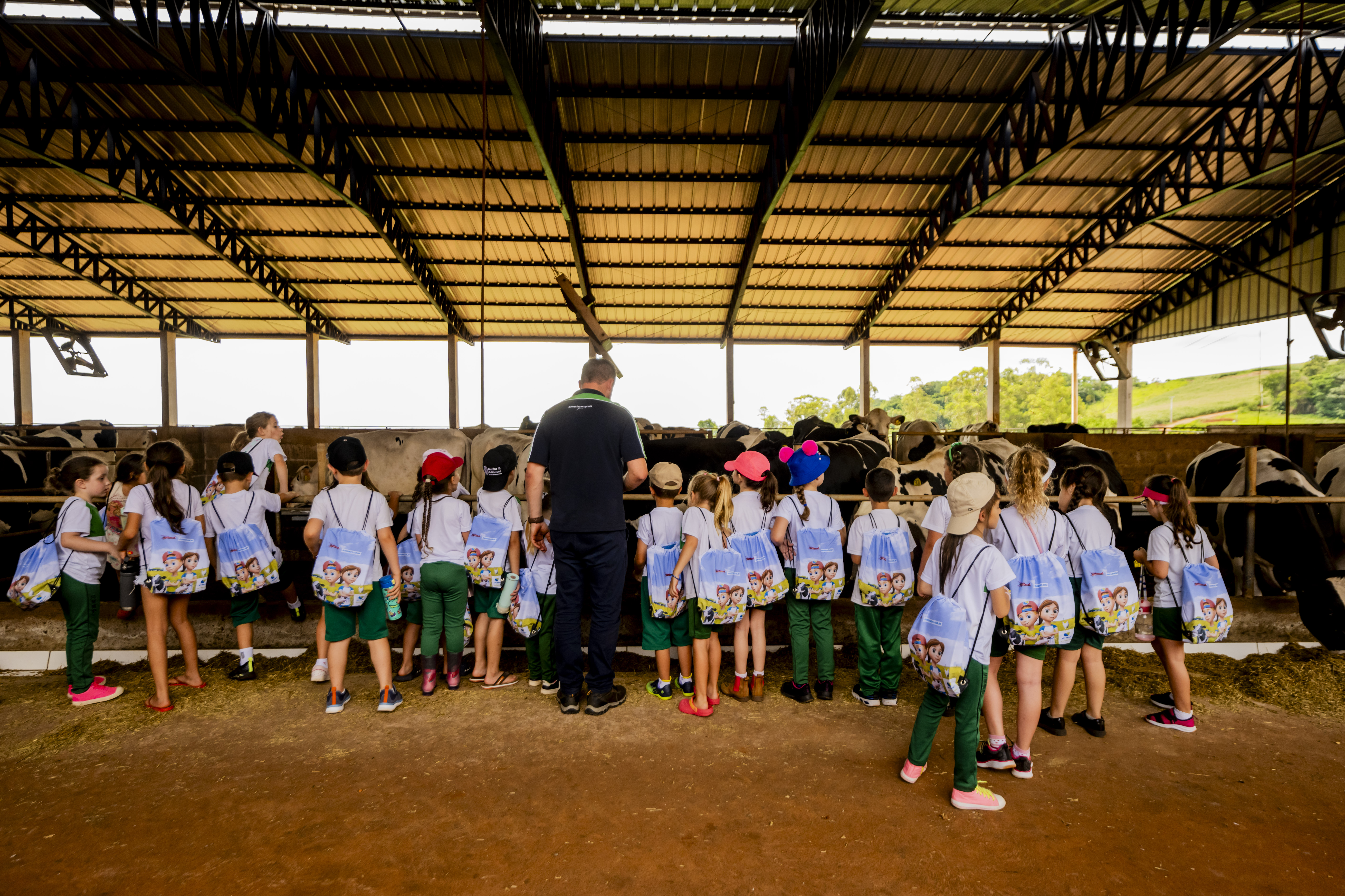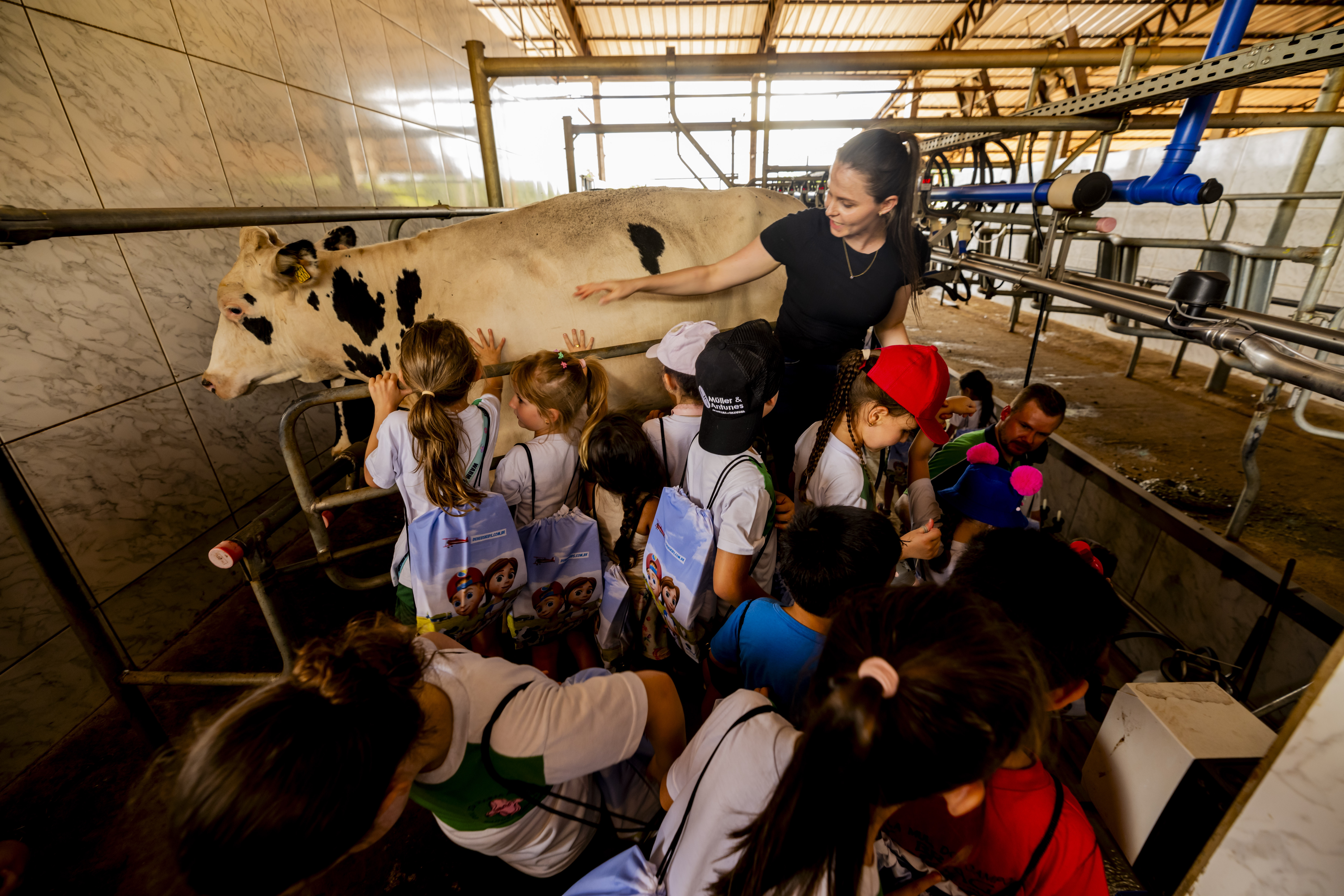 Crianças vivenciam o dia a dia da pecuária leiteira durante ação inédita do projeto De Heus Kids no Paraná