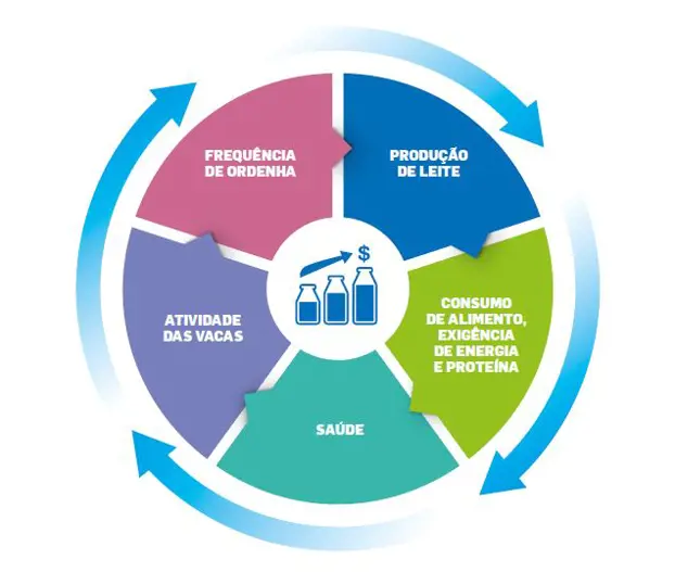 A “roda do sucesso” do RobotExpert descreve a relação entre os diferentes fatores que impactam a ordenha robotizada.