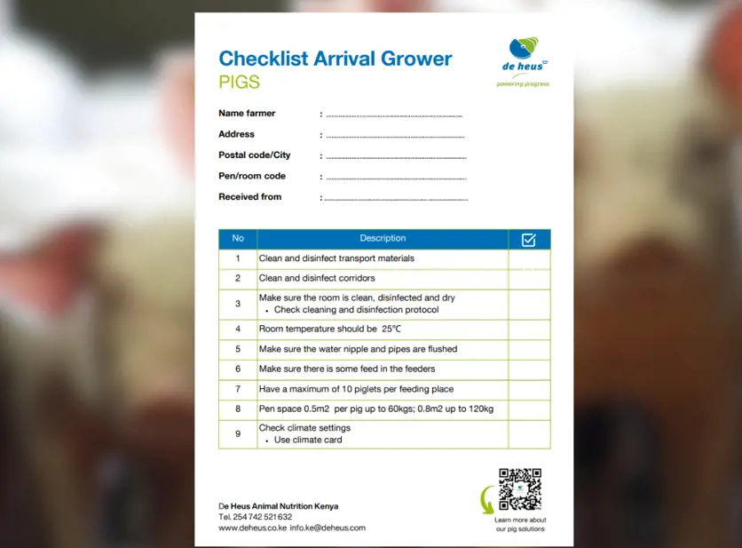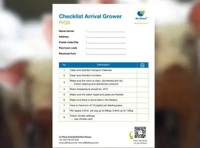 Checklist Arrival Grower Pigs