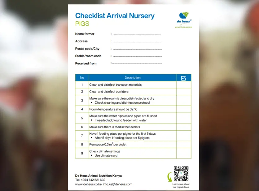 Checklist Arrival Nursery pigs