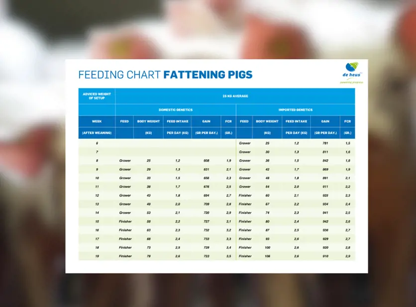 Feeding chart fattening pigs