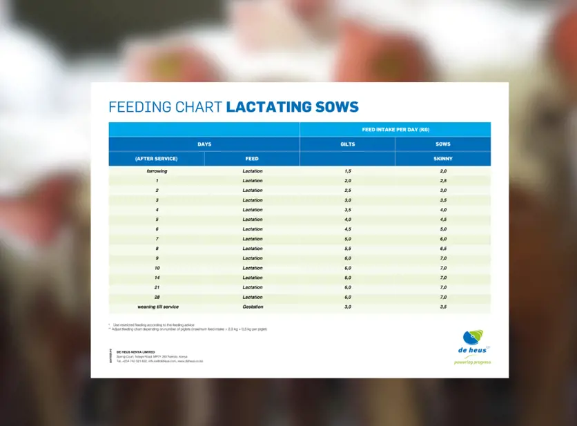 Feeding chart lactating sows