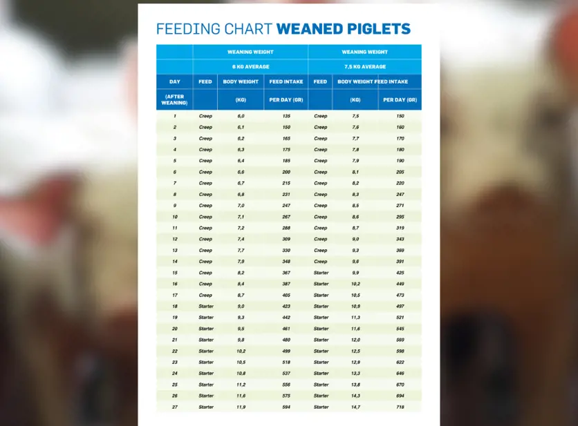 Feeding chart weaned piglets