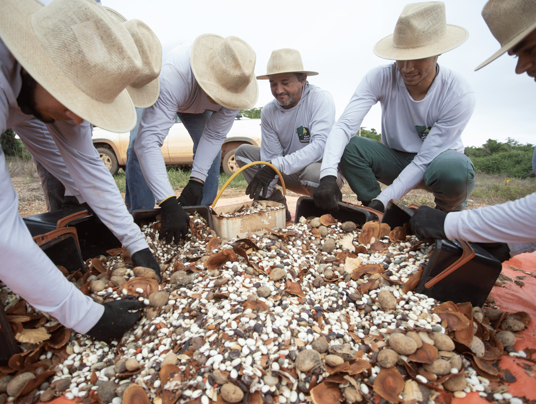 Em 2022, o primeiro ciclo completo de treinamento e assistência técnica foi concluído com 35 coletoras e coletores ativos e mais de 600 kg de sementes de 20 espécies nativas adquiridas.